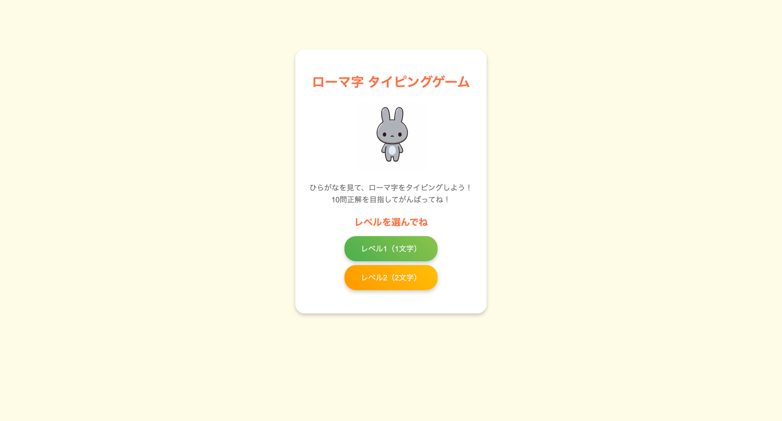 これはタイピング練習にぴったりのチャンスだなと思い、娘のために子ども向けのタイピングゲームを作ることにしました。